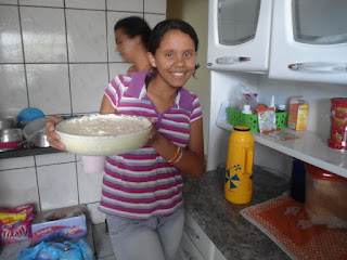 Quinta feira, quase cinco horas da tarde, decidimos o cardápio: Maionese. Modéstia à parte, ficou muito boa, olha só a carinha da Hevellyn… Sinceramente, o horário ativou a fome, e deu uma pitadinha no tempero, pois como já diziam os mais velhos: O Melhor Tempero é a Fome kkkkkkkkkkkkk