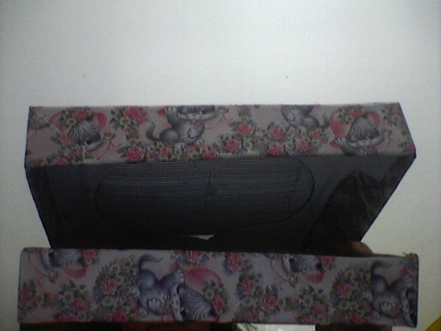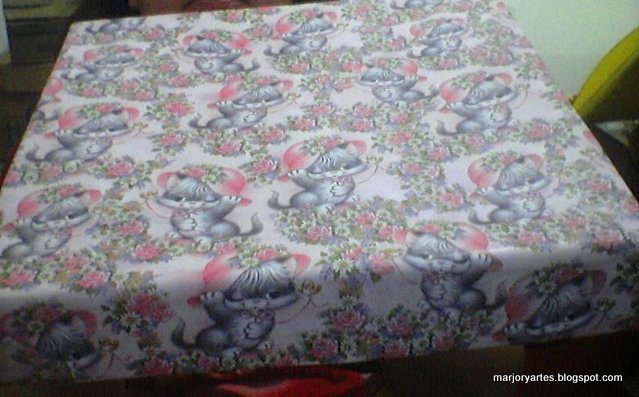 Essa caixinha foi a primeira a ser encapada, para guardar adesivos e papeis para decoupage.