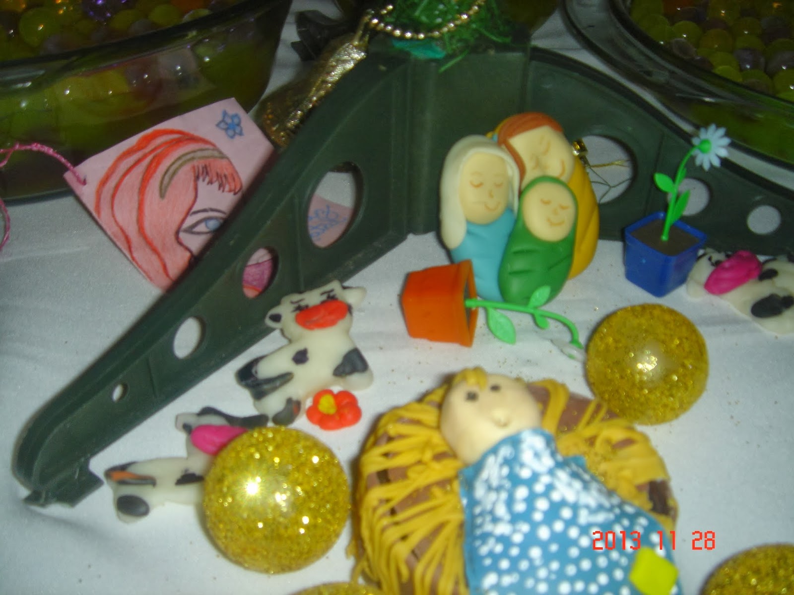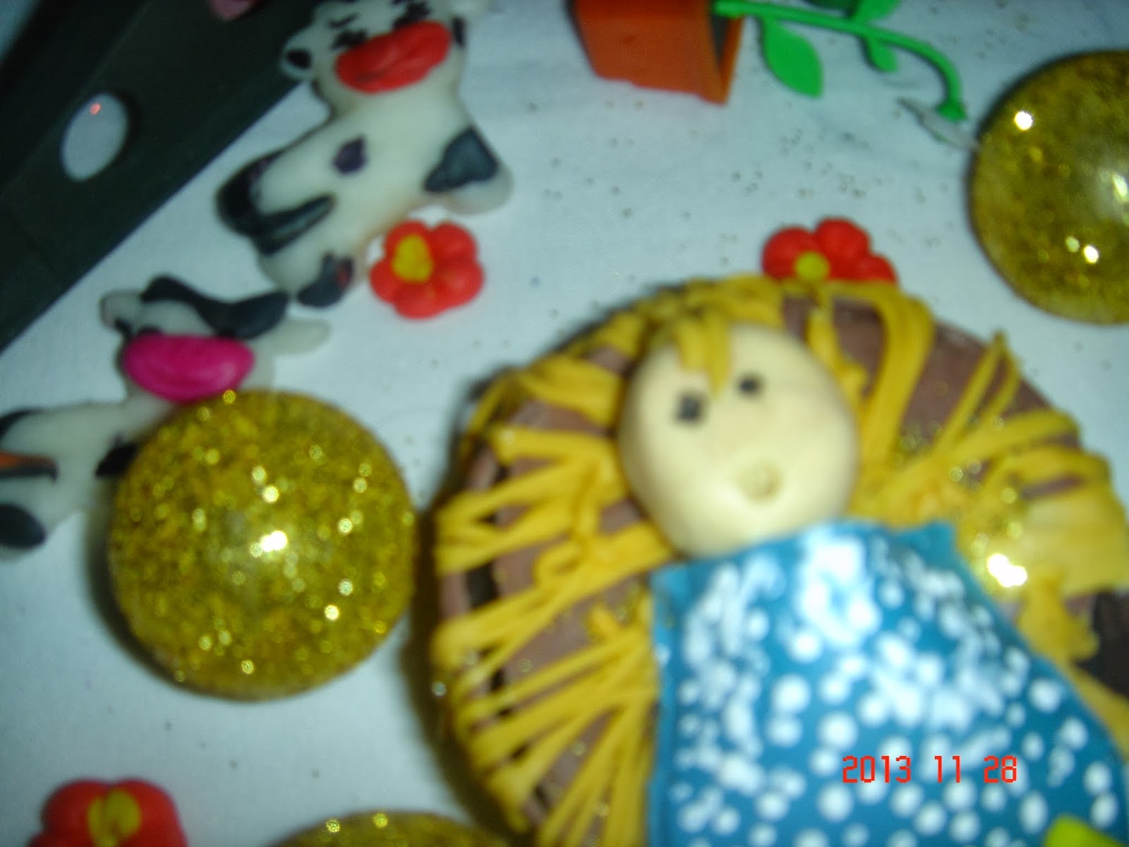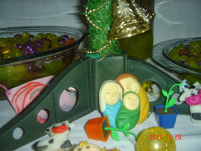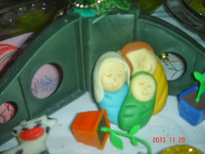 Ano Passado eu fiz o casal com bebê e a Raquel fez o menino Jesus na mangedoura em biscuit