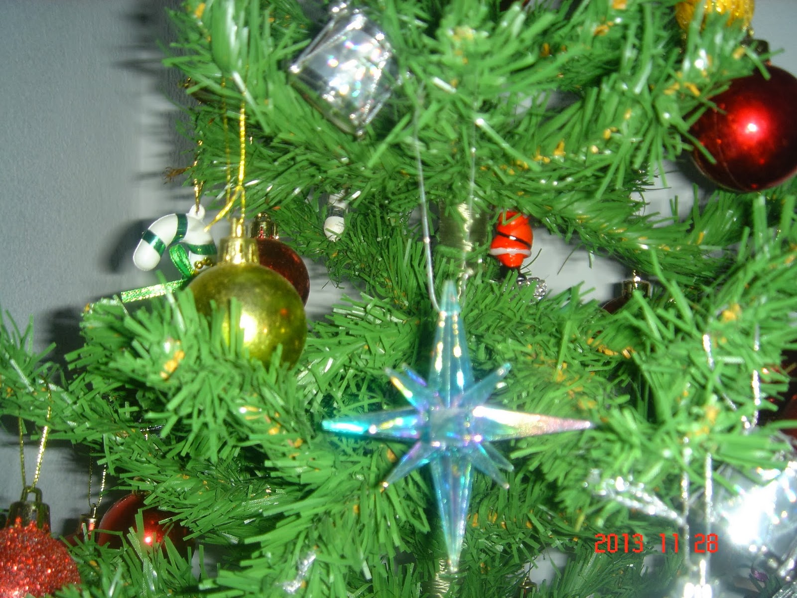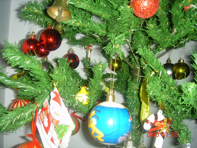 Esse floco de neve, eu acho que é, ou estrela e as mini guirlandas foram presentes da minha amiga Drucila,ano passado