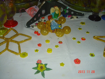 Essas florzinhas também são de biscuit, foram feitas pela Raquel, Quesia e Miriã ano passado