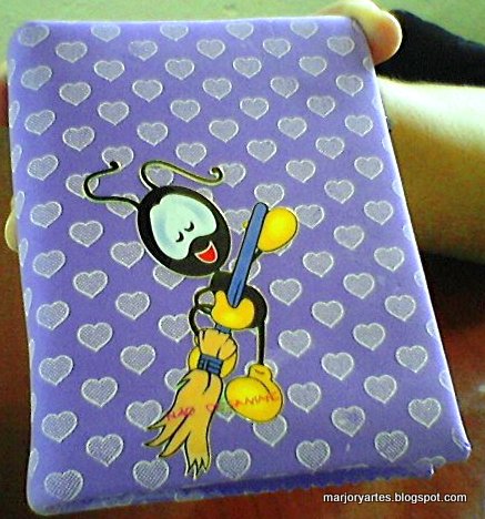 A capa original estava descolada, suja, e as páginas já destacando, então optei por fazer nova capa, com EVA,colei bem as páginas, e coloquei sulfite branca como contra capa. Gostaram?