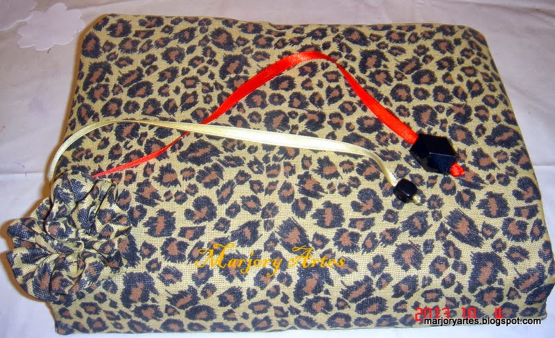 O tecido escolhido e o resultado, essa flor como detalhe e marcador de páginas.