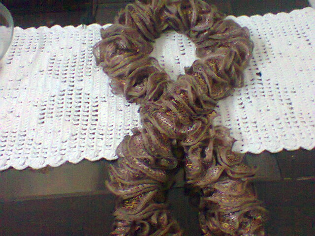 Uma encomenda entregue hoje, minha amiga Heine Pádua fez a gentileza de posar pra foto. Já fiz um parecido com esse, e amei o resultado de ambos. Essa linha é maravilhosa, macia e as cores…esse fio dourado o deixa glamouroso.
