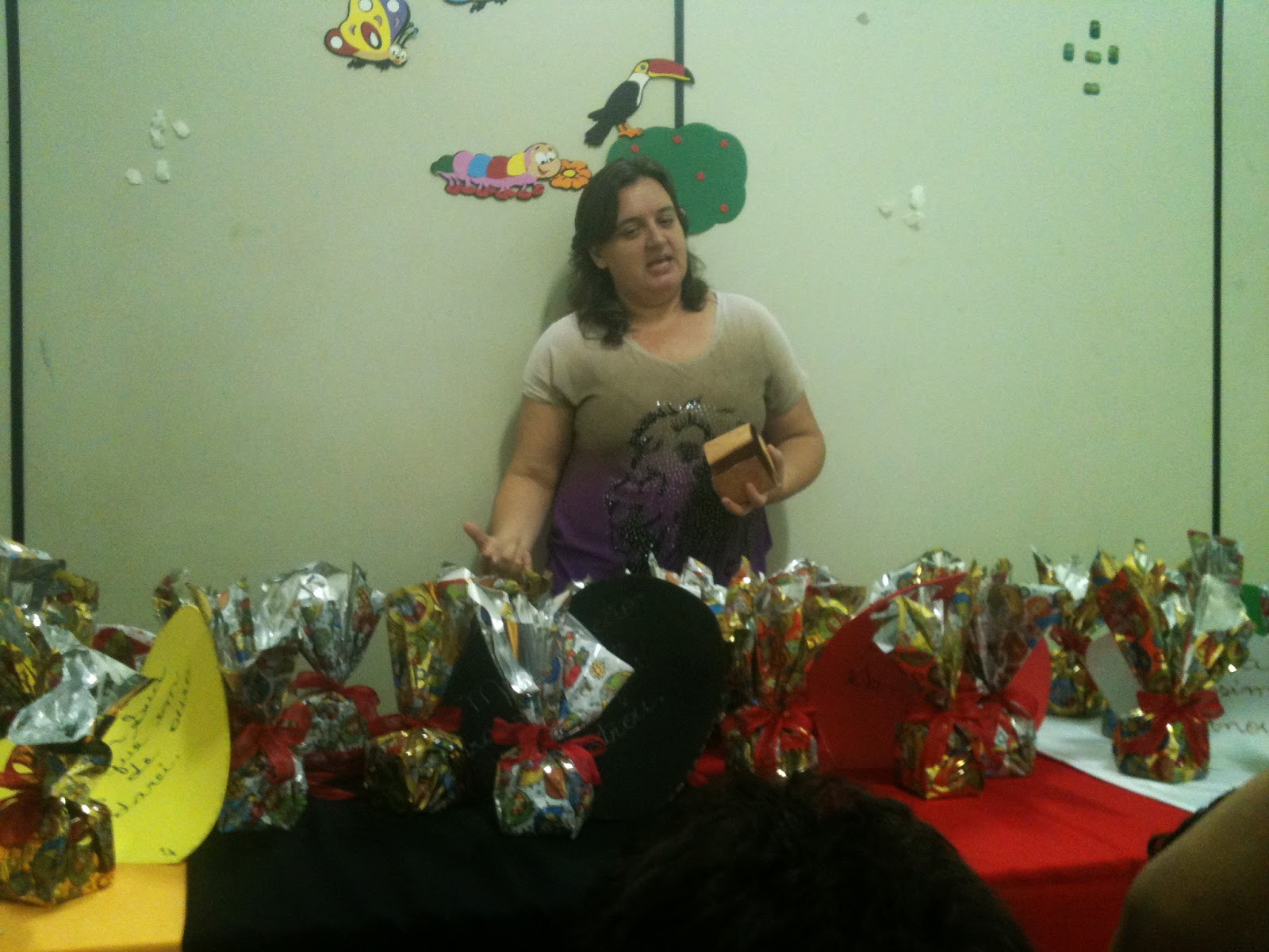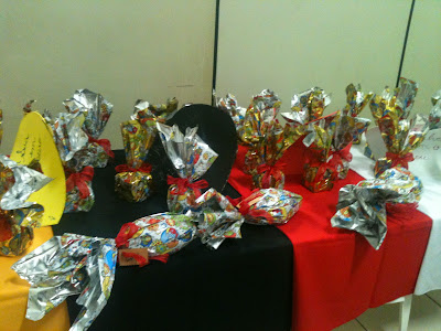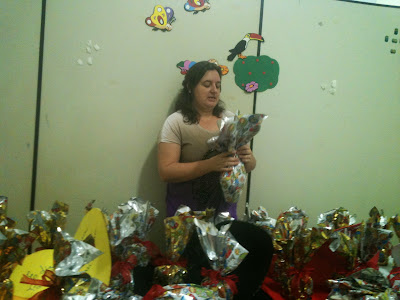 Todas as lembrancinhas, A Caixa cruz, foram embaladas como ovos de chocolate,