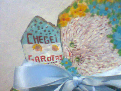 Esse enfeite de porta maternidade, foi feito há mais de 30 anos, pela D. Cida, sogra da minha madrinha Elza,