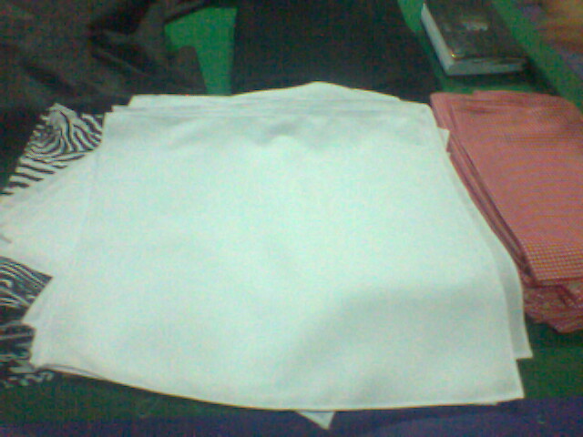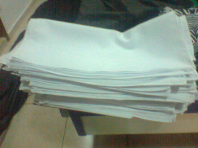 Chegaram os tecidos, cortados, menos os guardanapos, o tecido branquinho 16 metros inteiros.