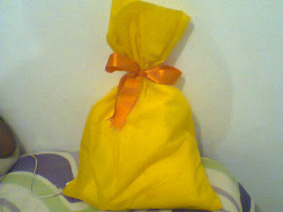 E aqui o presente embalado, um saquinho de TNT, um material versátil e com preço bem acessível, que eu gosto muito.