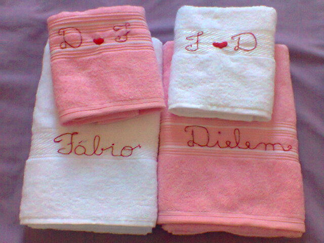 Toalhas de Banho e rosto. Minha primeira experiência com Bordado livre. Gostei, mas pretendo melhorar, vou treinar e venho mostrando.