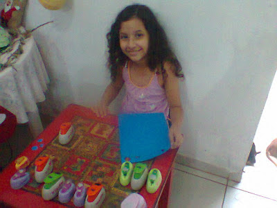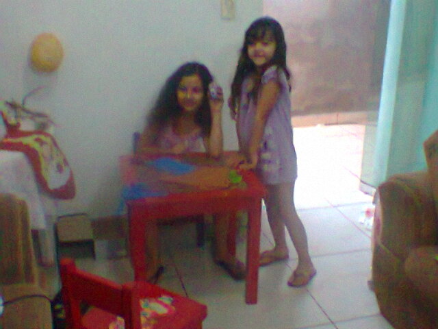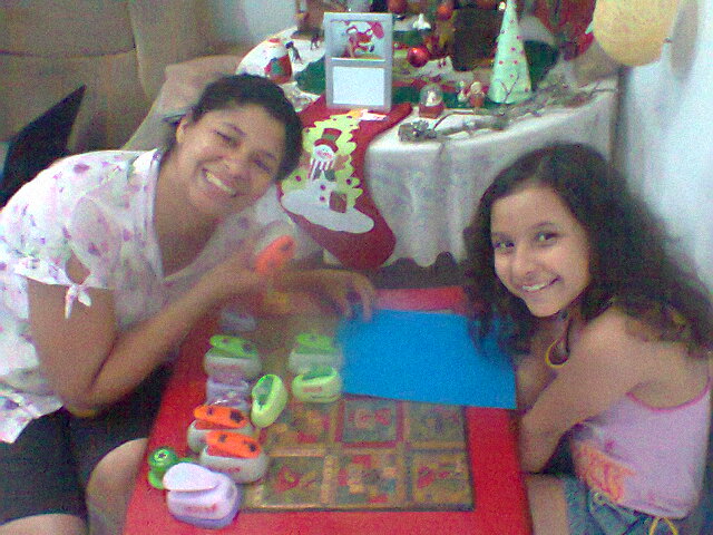Nessa noite, ficamos produzindo um verdadeiro galinheiro e mesmo com muito trabalho e já com um certo cansaço, ela ainda parou TUDO, arrumou a mesinha no lugar mais adequado, e foi explicar para minha Raquel como usar os cortadores de papel, com detalhada explicação e observação.
