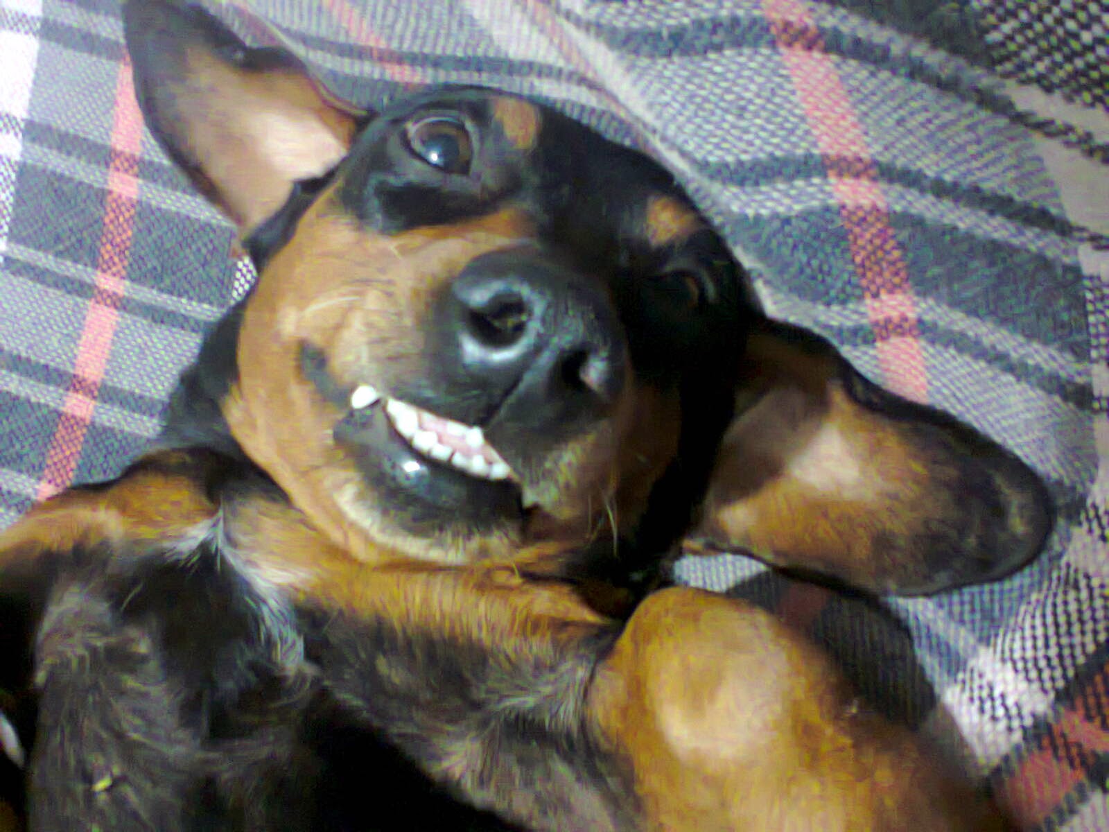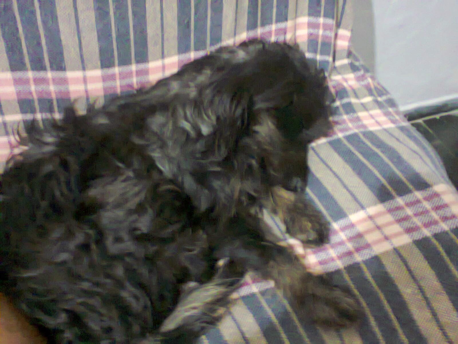E a Lili, essa Daschund mestiça, preta com canela, ela veio para cruzar com o Tyrone, minha amiga não tinha espaço suficiente na época, então ela cruzou, teve uma ninhada de 9 filhotes, 6 machos e 3 femeas,os filhotes foram todos adotados, e minha amiga ia doá-la também, então ao invés de ficar com um filhote, ficamos com ela.