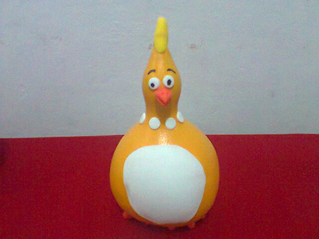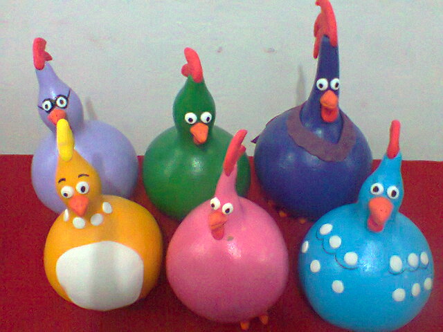 Minha primeira experiência com cabaça, a pintura foi feita pela Dru, eu fiz as cristas, bicos, olhos,bicos,papinhos e pezinhos em biscuit.